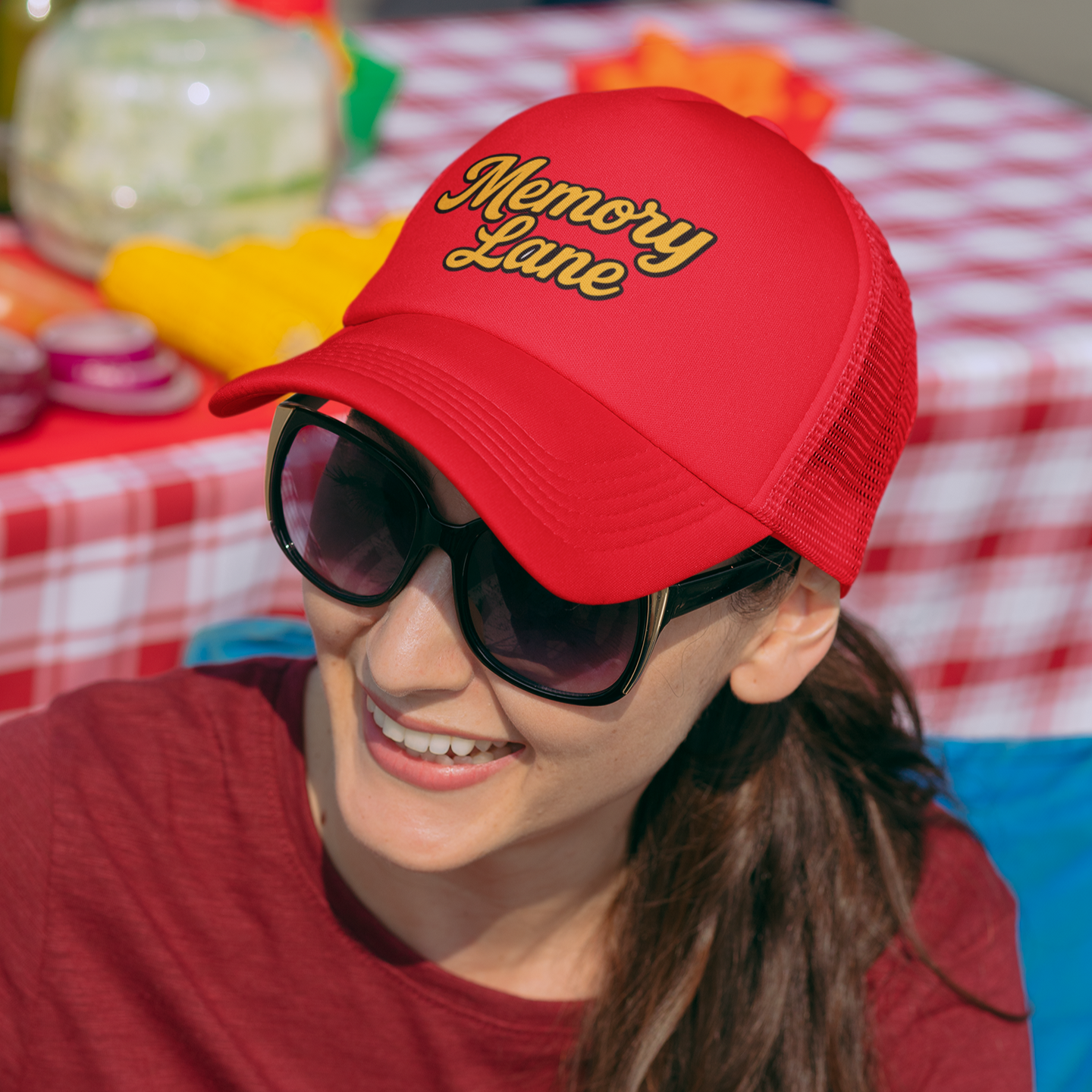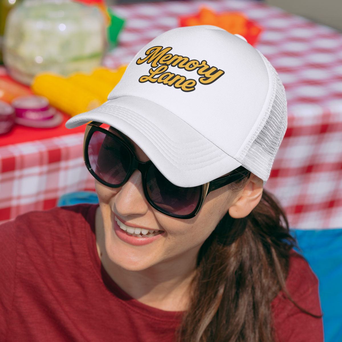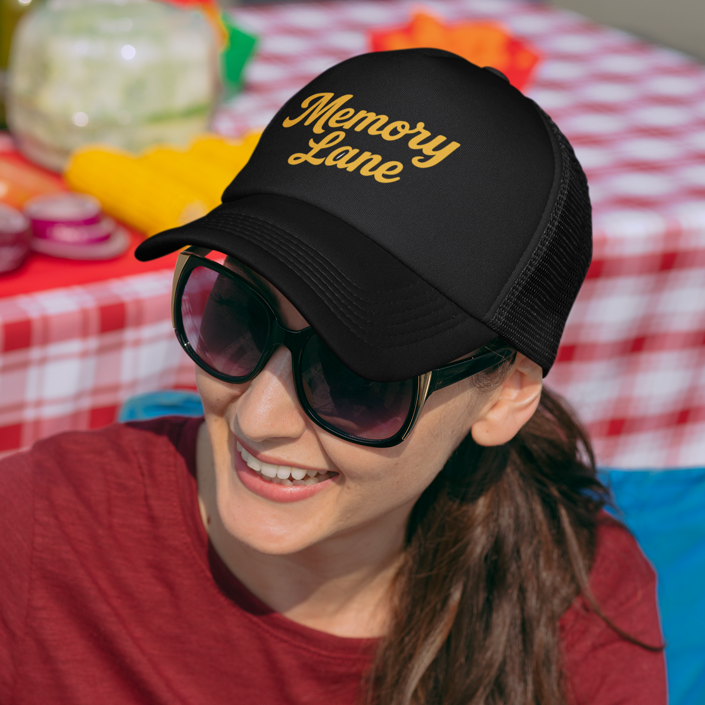 Estilo vintage com atitude moderna. O Boné Trucker Memory Lane combina o clássico modelo americano com tela traseira e uma estampa cheia de personalidade: o nome Memory Lane em tipografia retrô, na cor mostarda, trazendo aquele ar nostálgico dos anos 80 e 90.