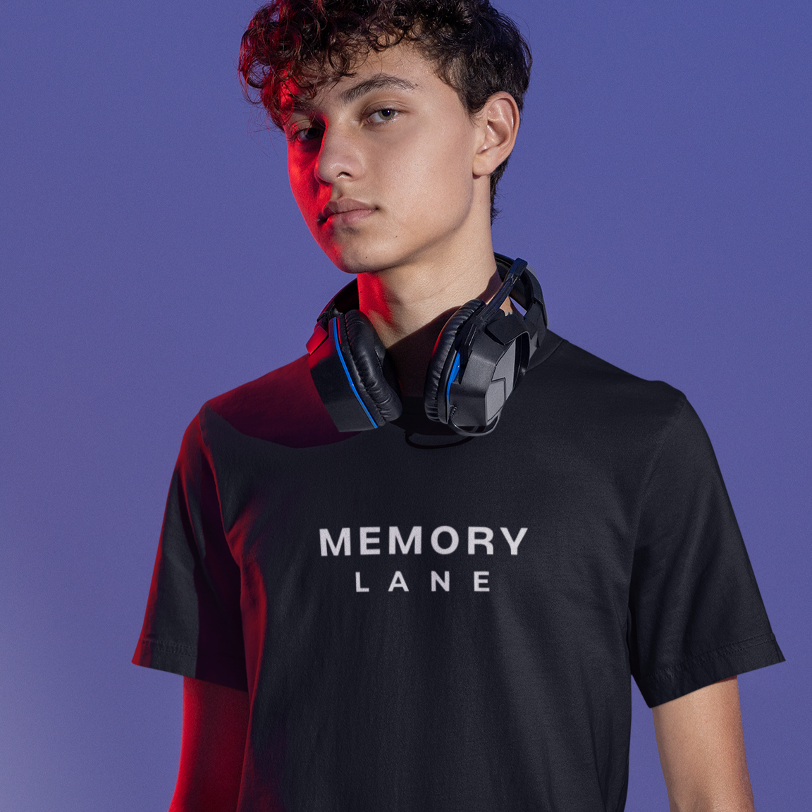 Na frente, o clássico logo Memory Lane em branco sobre o preto da camiseta, como uma identidade sutil de quem vive (e revive) o melhor da era analógica.